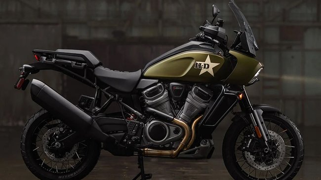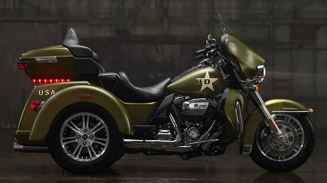G.I. Enthusiast摩托车系列致敬传奇与经典。这款限量版车型采用高级磨砂孔雀绿涂装,并配有专为Pan America™ 1250定制版和Tri Glide™ Ultra车型设计的定制图案。