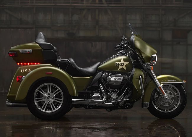G.I. Enthusiast车系,向那些曾经并仍旧在服役的哈雷骑士致敬。限量车款身披高级磨砂孔雀绿与专属徽标,仅在Pan America® 1250 Special 与 Tri Glide® Ultra锋芒呈现。